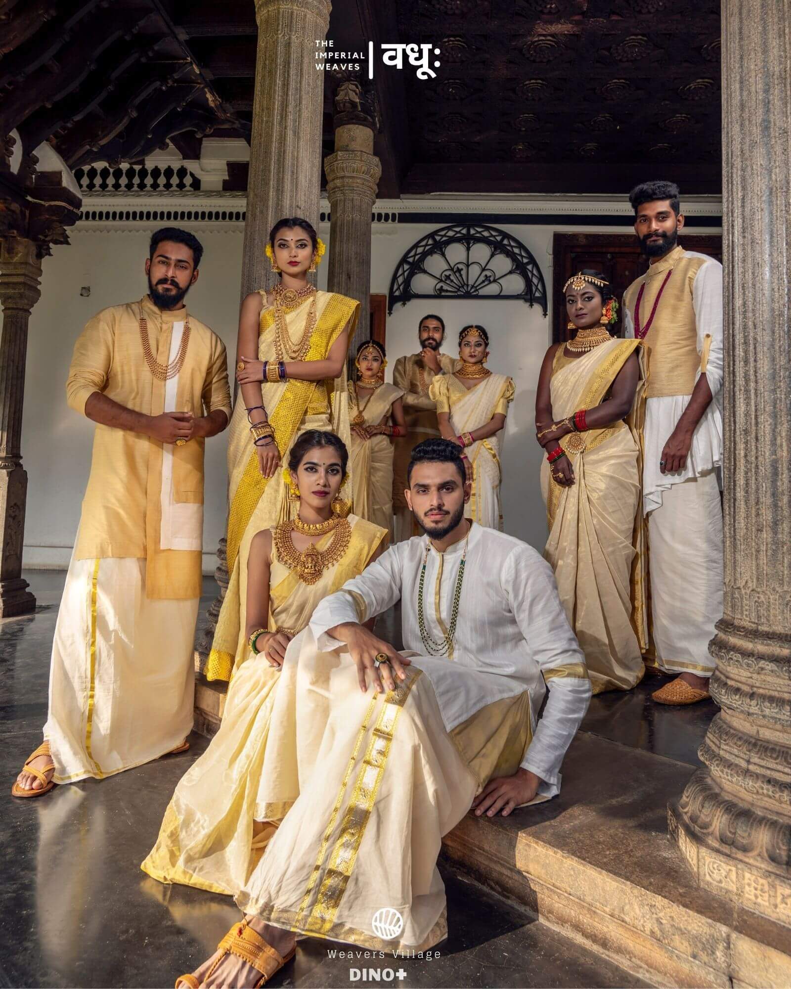Premium Handloom Tissue Set Mundu With Golden Kasavu
