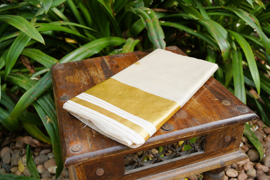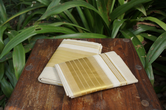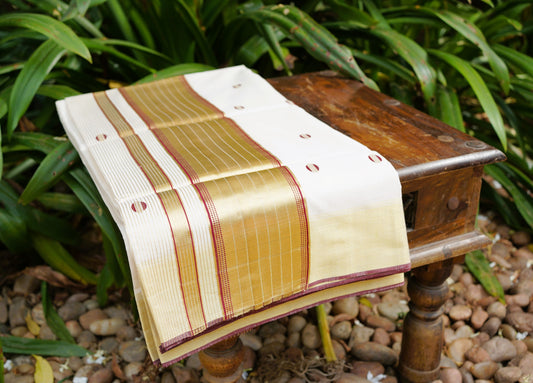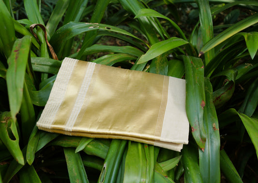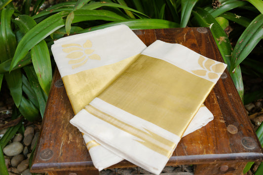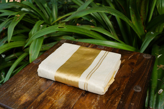 Premium Handloom Tissue Set Mundu With Golden Kasavu